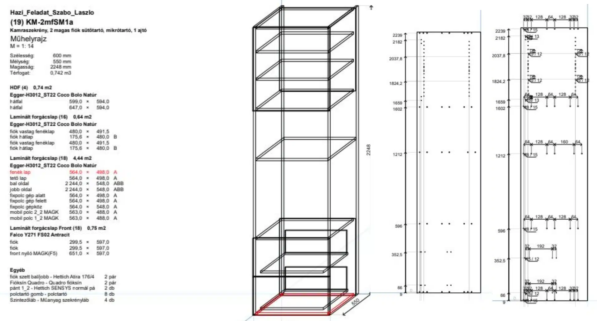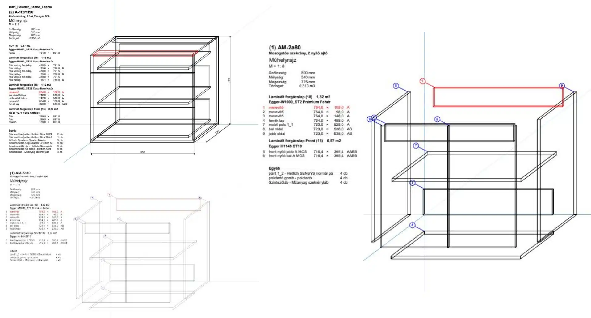 - Méretezett, mérethelyes – Műhelyrajzot minden bútor elemről