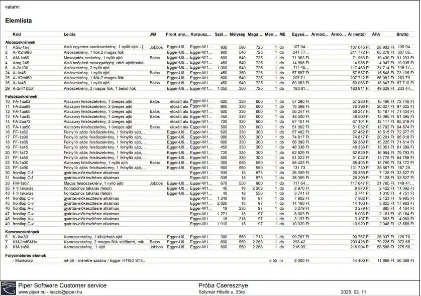 - Egy gombnyomással kiexportálod egy Excel fájlba a teljes anyaglistát – és ezt elküldöm a lapszabászatnak (itt a lapszabászatodon múlik az optimalizálás… de a Pieperben ellenőrizni tudod, hogy a lehető legjobban optimalizáltak-e).