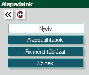 Alapadatok Az Alapbeállítások megnyitása menü, illetve ikon nézetből: Itt négy lehetőség közül választhatunk. Az almenük eléréshez használja az alábbi linkeket, vagy a bal oldali legördülő menüt Nyelv beállítás Alapbeállítások Fix méret táblázat Színek