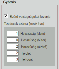 Beállíthatjuk értelem szerűen, hogy melyik értéket hány tizedes jegyig kerekítsen a program a gyártási listában.