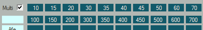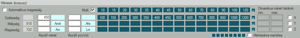 - A multi kapcsoló bekapcsolásával egy újabb sor jelenik meg. Lehetőségünk nyílik arra, hogy egy beállítással egyszerre több azonos beosztású, de különböző szélességű bútort tudjunk generálni.