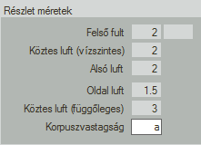 A luftokról és a korpusz vastagságáról egy tájékoztató jellegű felületet látunk a jobb felső sarokban.