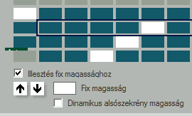 - A táblázat alatti kapcsolóval egy kis vízszintes zöld vonal jelenik meg a sorok között, amit a nyilakkal lehet fel-le mozgatni. Ez jelképezi azt a magasságot, amit egy fix értékkel, vagy a dinamikus alsószekrény magasság kapcsolóval lehet beállítani.