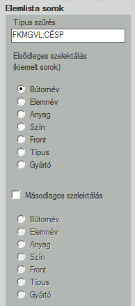 Itt állítható be, hogy az elemlista milyen sorokat tartalmazzon, és azok milyen csoportosításban, sorrendben jelenjenek meg.