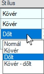 - alátöltés: Az adott sor szürke alapon jelenik meg. Ezt bal egér gombbal lehet be-, és jobbal kikapcsolni.