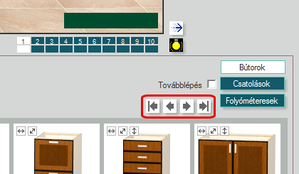 - A jobb oldalt található ikonok segítségével léphetünk a bútorok listájában előre, hátra, a végére vagy az elejére.