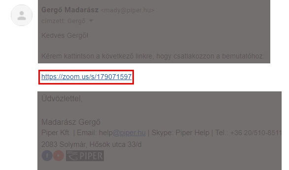 - Kattintsunk a bemutatóról kapott emailben lévő linkre.