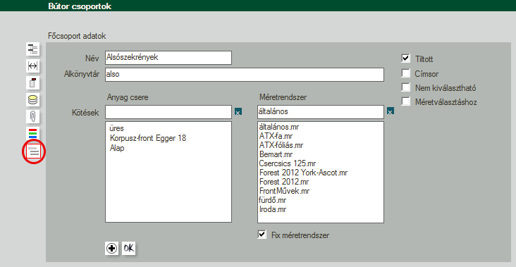 Amelyik főcsoportnál ez aktív, abban a főcsoportban vannak a méretrendszer ábráihoz szükséges bútorok. - Anyag-csere.