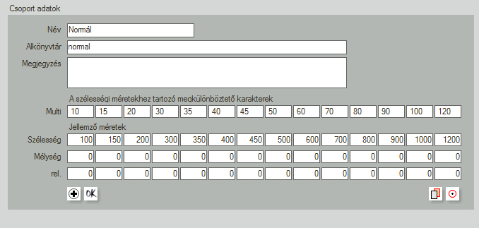 - Minden szélességi értékhez tartozik egy multi érték, ami az automata bútorgeneráláskor, a multi módhoz szükséges megkülönböztető karaktereket tartalmazza. (Magyarázatot lásd itt). Ezeket az érétkeket másolhatjuk, és egy másik csoportba beilleszthetjük.