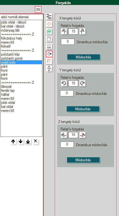 - A két ikonra kattintva tudjuk az elemet forgatni adott dimenzióban