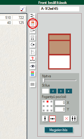 A jobb oldali ikonsor második elemén található a frontok beállításai. Itt kijelölhetjük az aktuális bútor frontjait külön-külön.