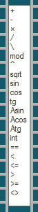 Az adatmezők közötti szűkebb mezőkbe írhatók be a műveletek. A mezőre kattintva a műveleti jelek listája jelenik meg, amiből választhatunk. Ez matematikai és logikai műveleteket, trigonometriai függvényeket tartalmaz.