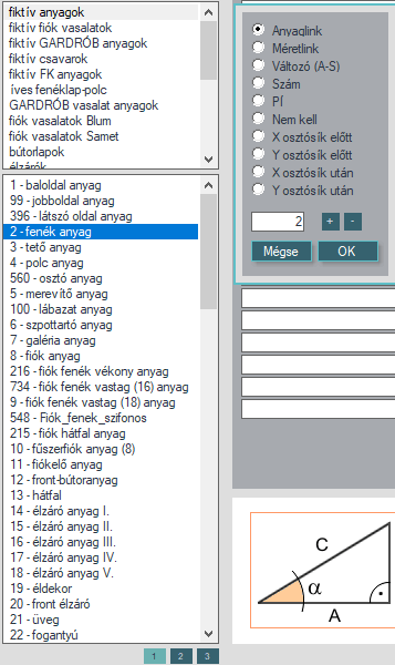 10 adattípus közül lehet választani, majd az alsó beviteli mezőbe kell a kívánt értéket beírni. Ez utóbbi megkönnyítésére, mivel sokszor indexeket kellene beírni, listákból is választhatunk. Anyaglink