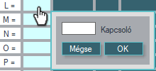 Az adat mezők bármelyikére kattintva egy adatbeviteli ablak jelenik meg a mező alatt, vagy alsó soroknál felett.