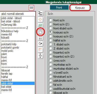 - Kiválasztható, hogy egy adott frontnak melyik altípusa jelenjen meg (pl. normál, fiók, üveges stb.) A felső sor mind a 6 alaptípusához az alsó sor 6 eleméből lehet választani (36 lehetséges variáció).