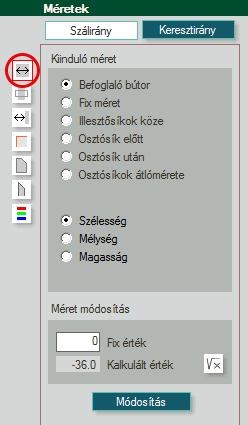 1. Befoglaló bútor, aminek 3 lehetősége van (szélesség, mélység, magasság). Ilyenkor a kiinduló méret a majdani bútor befoglaló formájának a kiválasztott mérete.