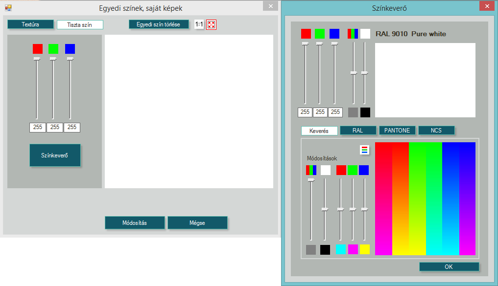 Ilyenkor a három színösszetevőből, piros, zöld, kék (RGB) illetve a színkeverővel keverhetünk ki egy tetszés szerinti kitöltő színt.