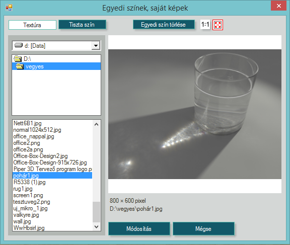 A színválasztó felületeken, akár a tulajdonságokban, akár a kiegészítő színeknél, jobb egérgombbal kattintva állíthatunk be saját fotókat, vagy színeket.