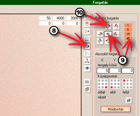 Klikkeljen az Y tengely körüli jobbra forgatás ikonra