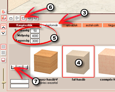 A ferde plafont bútorként helyezzük a szobába mint egy normál fal, majd elforgatjuk.