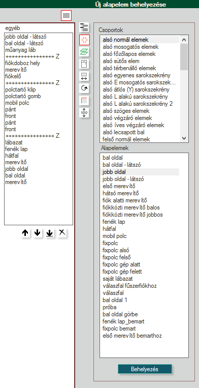 - Az itt kiválasztott alapelemet a behelyezés gombbal rakhatjuk a bútorba.